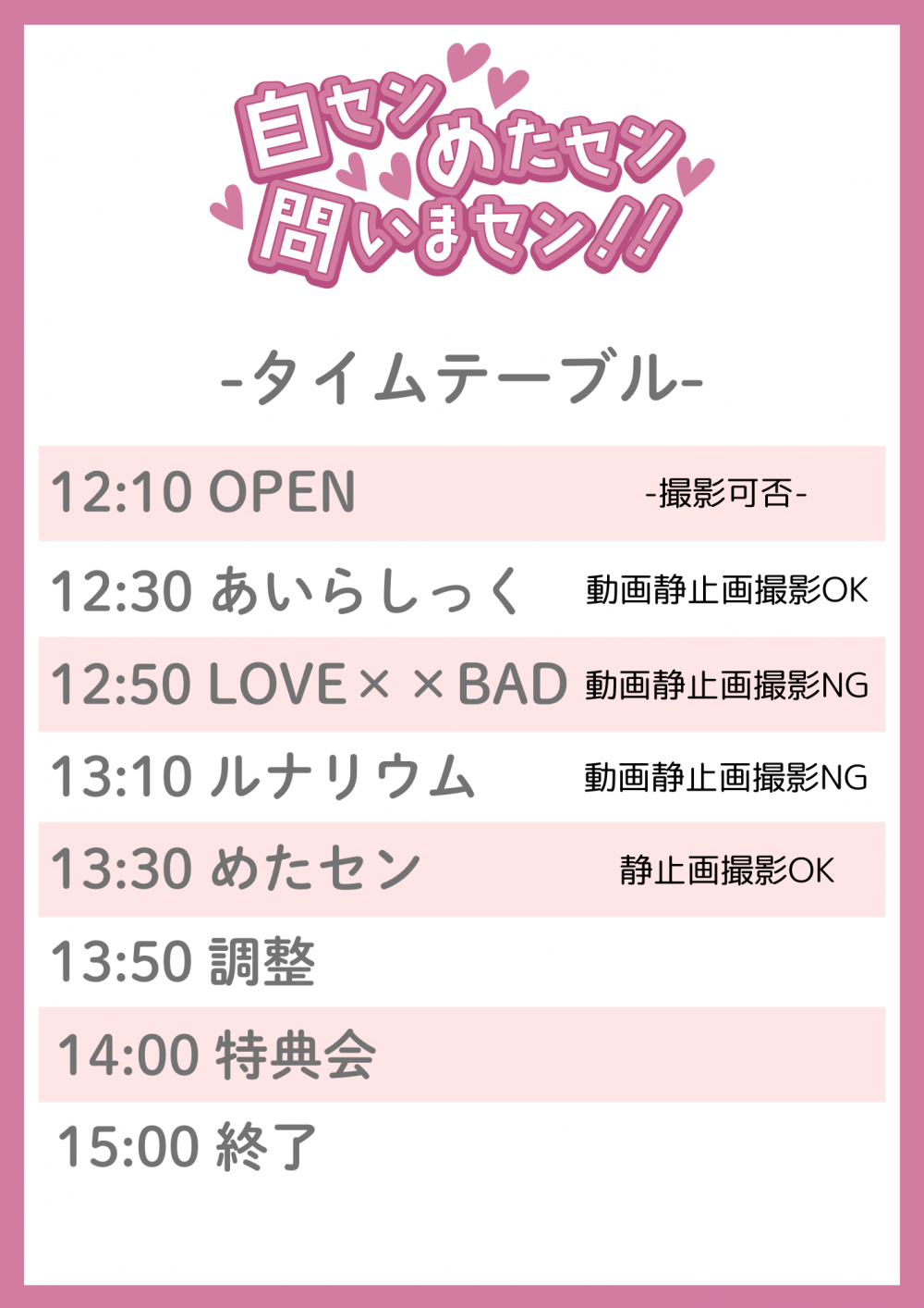 入場順:①優先チケット整理番号順②一般チケット整理番号順③当日券(整列順)